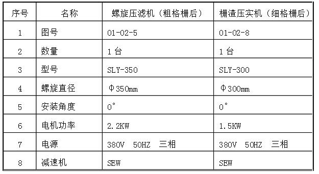 螺旋输送压榨机的设计、制造和安装保证买方的技术使用要求,有高度的工作可靠性,尽可能少的维修工作量。螺旋输送压榨机在工作过程中有排水功能。螺旋输送压榨机的形式为有轴螺旋式,螺旋与主轴的焊接牢辈结实,主轴的支撑轴能承受径向和轴向的双向负荷。驱动装置工作平稳可靠,无异常噪音。轴承及设备的所有转动部位有润滑,并能方便地加注。减速箱所有结合面及输入和输出的轴密封处无渗漏。 * 驱动装置具有过载保护功能。 * 压榨机的控制与格栅的电气连锁。